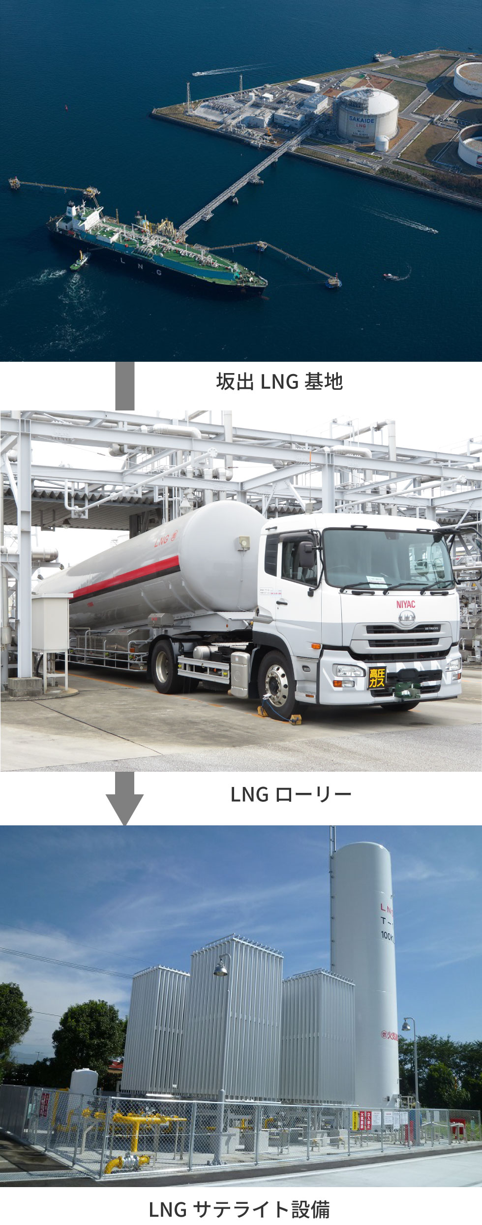 お客さまがご希望の場合、LNGサテライト設備や消費機器の設置・保有、メンテナンス等を含め、LNG導入やご利用を総合的にサポートする「エネルギーサービスプロバイダー」事業も実施しております。
