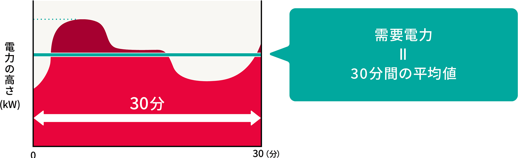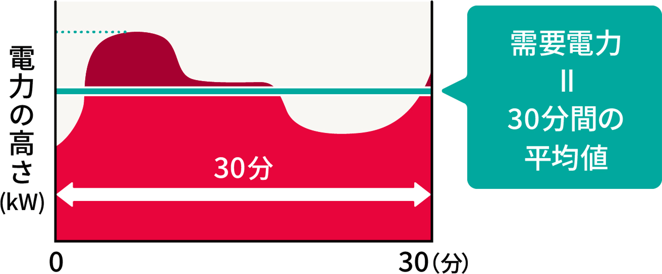 - 需要電力とは、時々刻々と変化している電力の大きさ(高さ)の30分毎の平均値とします。