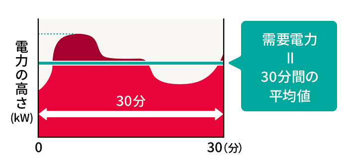 - 需要電力とは、時々刻々と変化している電力の大きさ(高さ)の30分毎の平均値とします。