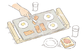 シンプルでおしゃれなホットプレートなら、テーブルに出しっぱなしにしておいて、朝ごはんや休日のお昼ごはんにも活躍させてはどうでしょう。各自でベーコンや卵を焼いてパンのお供にするもよし、パンケーキを焼くもよし。何より調理の手間が省けてとても楽です。