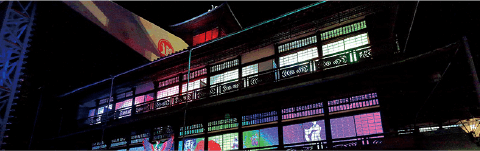 >プロジェクションマッピングに輝く「道後温泉本館」