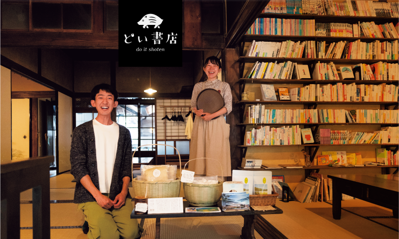 「大学院生が、古民家に住みながらまちおこしをしようとしている」という噂を聞きつけ集まってきたのが、小田地区で生まれ育ったフォトグラファー水本誠時さんと、その友人である松山市出身の映像作家Ko-kiさん。同い年だったこともあり、3人はすぐに意気投合。豊かな自然の中で温かいコミュニティを望む同世代が増えていることをそれぞれが実感していたこともあって、ここでできること、やりたいことを全部やろうと「do it(挑戦)shoten(以下:どい書店)」と名づけた拠点での活動がスタートした。