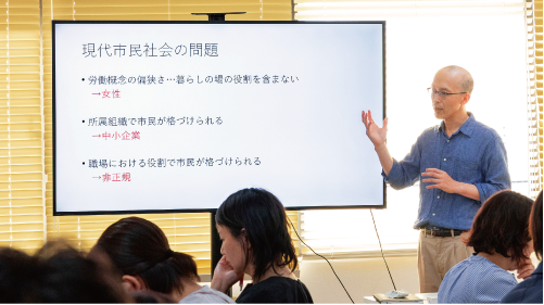 「職場や家庭以外に、安心して働くことについて語れる“第3の居場所”をつくろう」という目的から生まれた「はたらくしろくま(以下:しろくま)」。その象徴的な活動が、定期的にさまざまな問いを互いに持ち寄り“哲学対話”という手法を用いて話し合う「はたらくひとのための哲学と対話のじかん」である。「哲学といっても難しいことは何もなく、例えば『空気を読まないといけないの?』『私はちゃんと働けているのかな?』 というような日常の小さな疑問を、持ち寄って話す場なんです」と青木さんはいう。肩書きも立場も関係なく、ただ人として働くことを考える―そんな場所と時間を提供するのが「しろくま」の役目だ。
