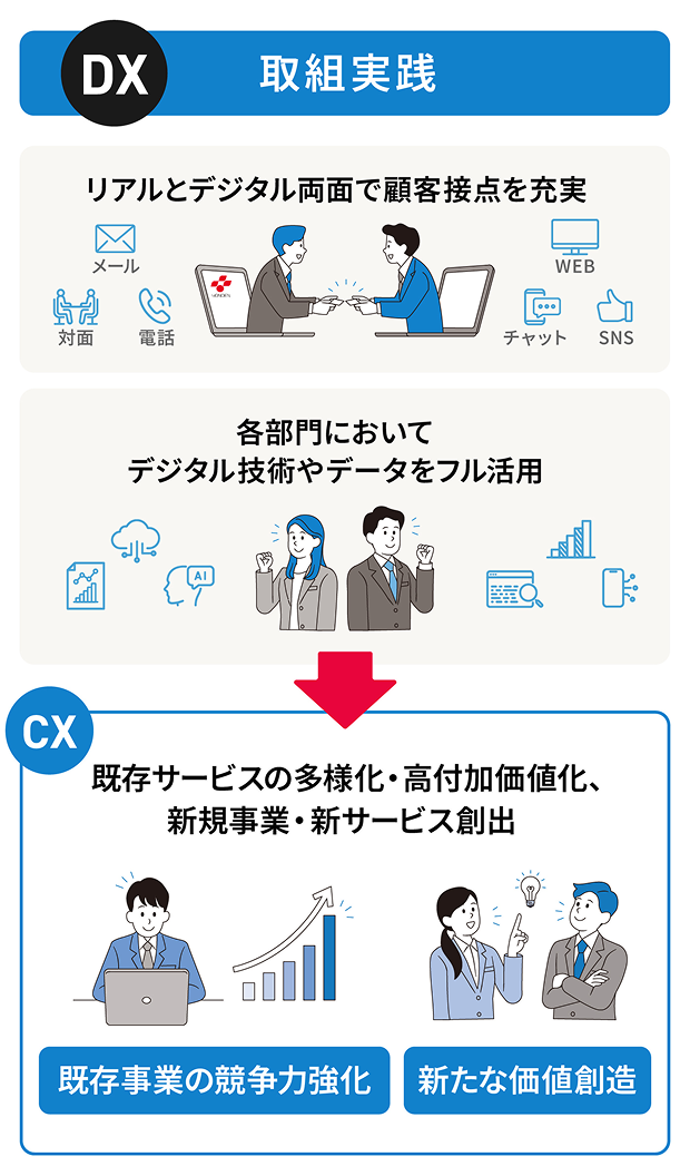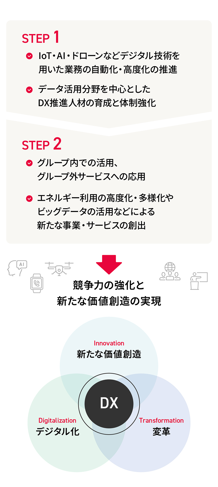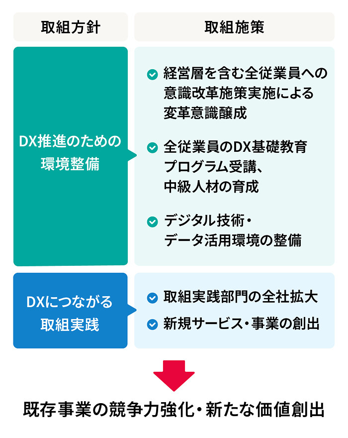 DXの推進により既存事業の競争力強化や新たな価値創出を実現することで、