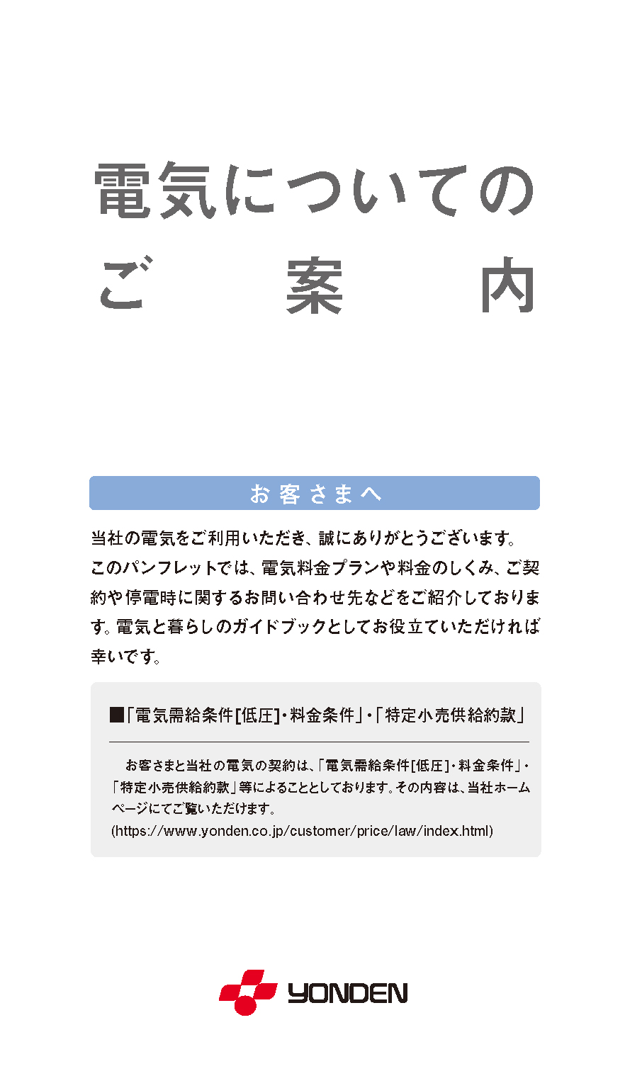 ご案内電気料金プランや料金の仕組み、ご契約や停電時に関するお問い合わせ先などをご紹介しています。