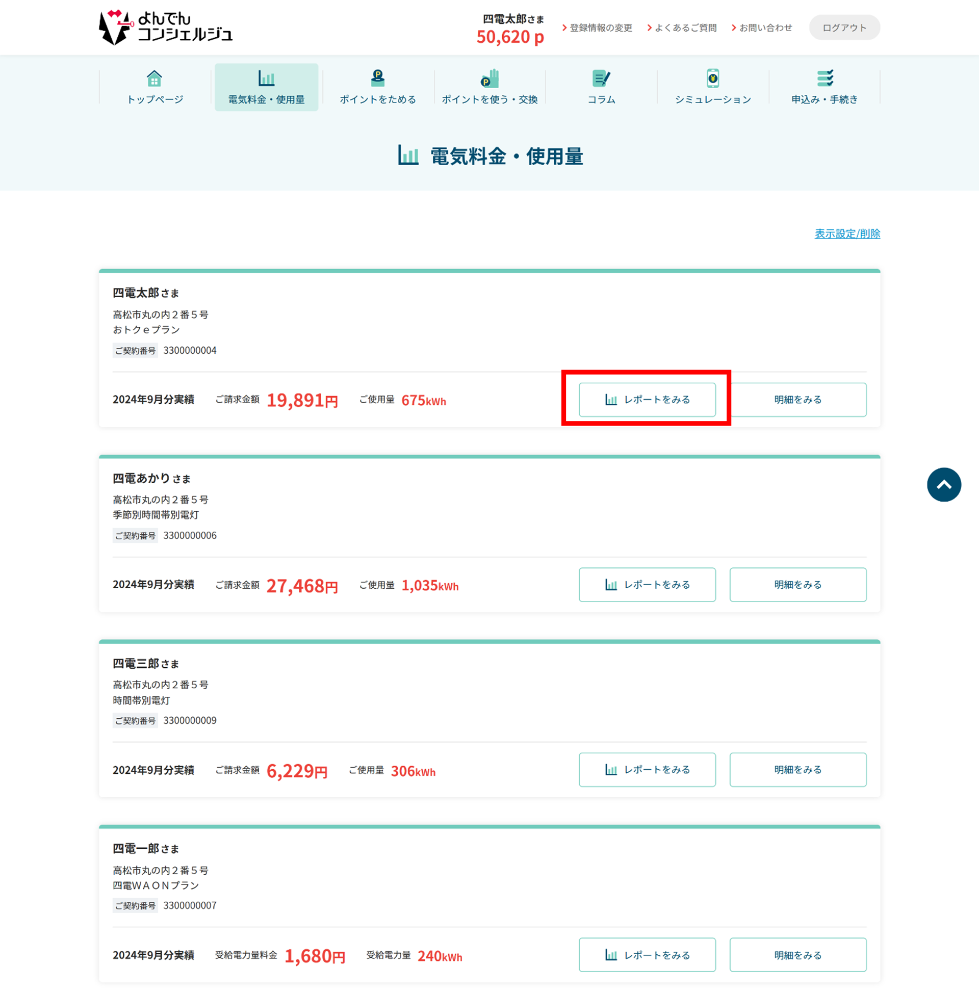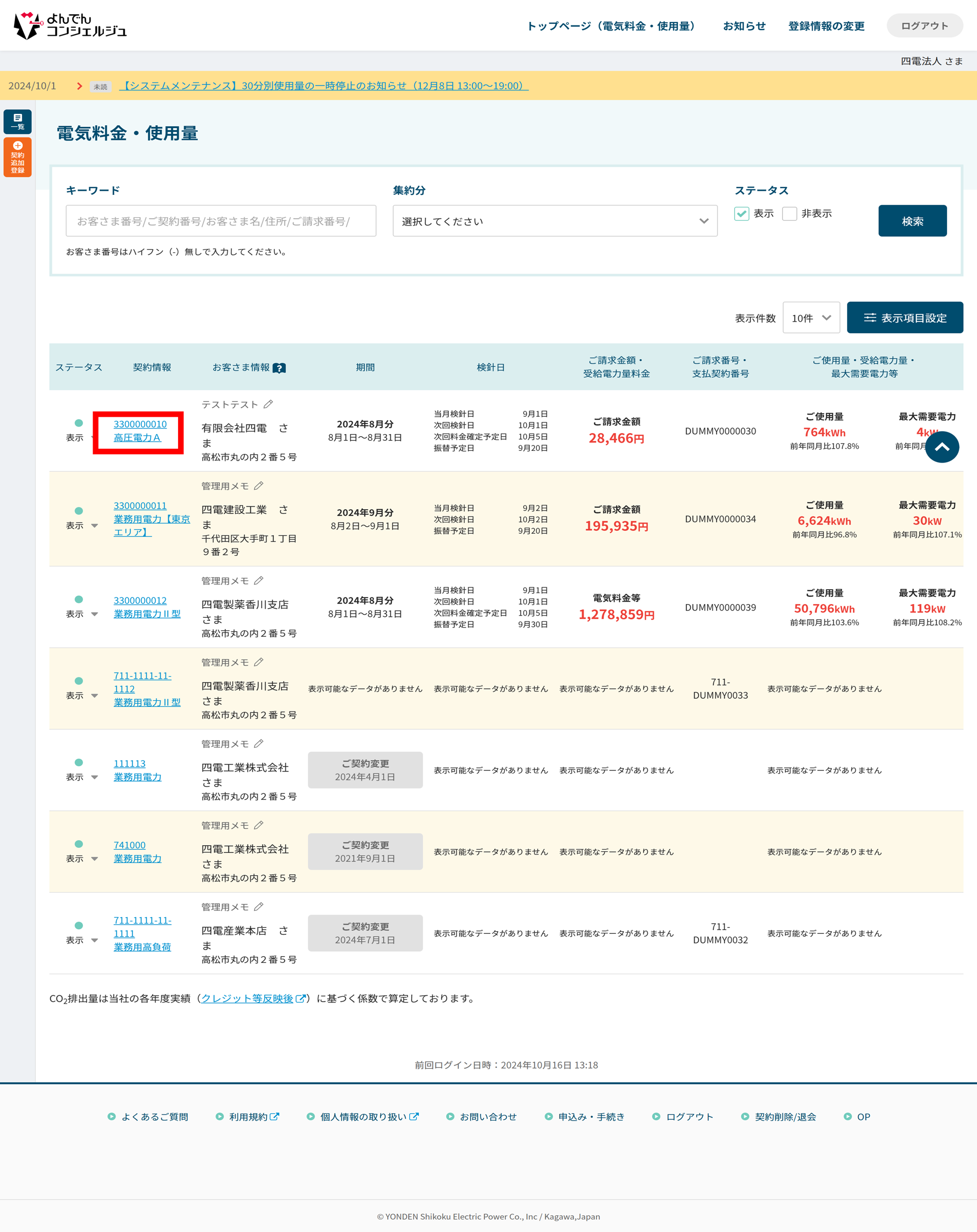 1.よんでんコンシェルジュにログインし、契約を選択します。