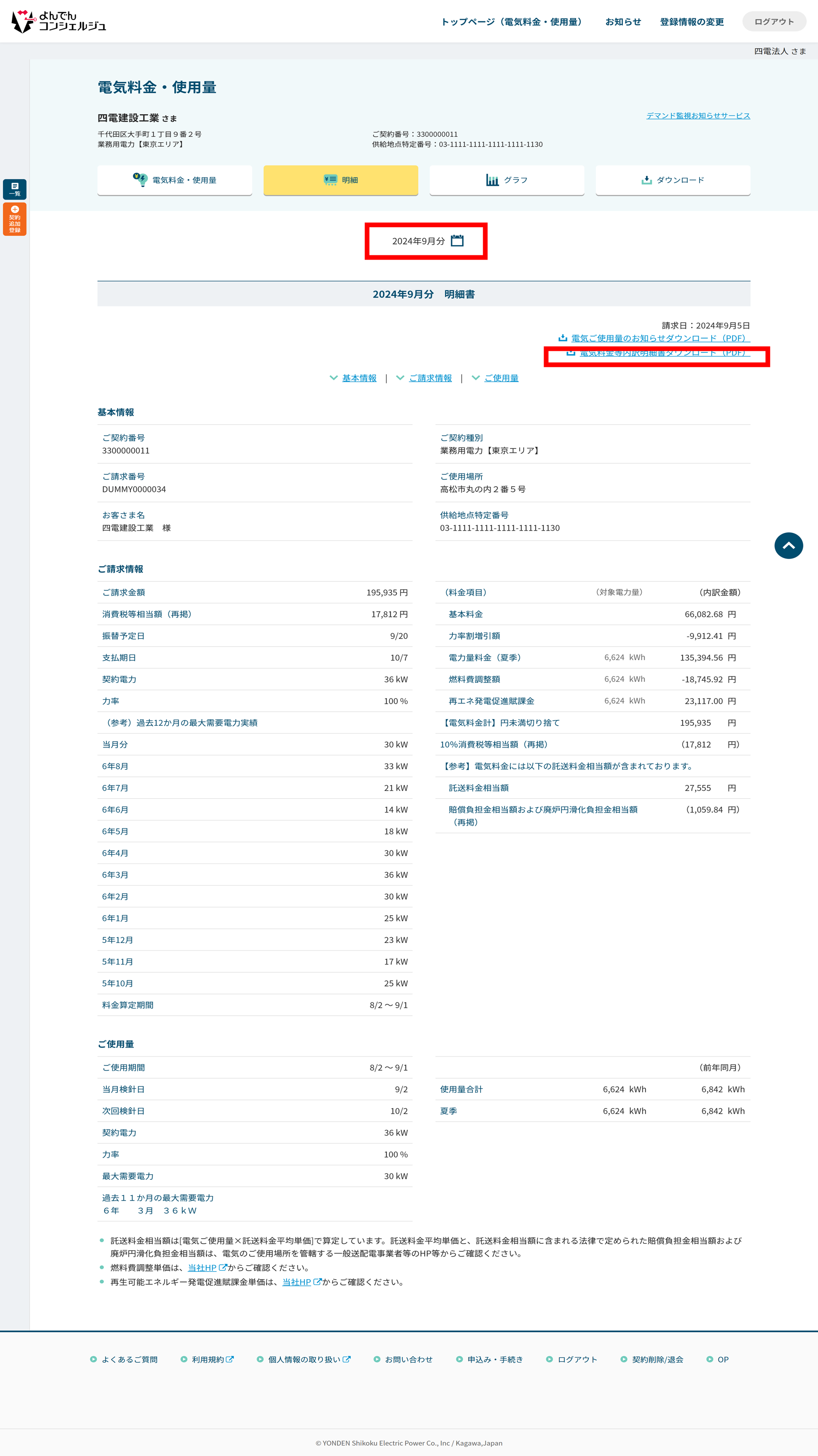 当社の会員制Webサービス「よんでんコンシェルジュ」にて適格請求書(インボイス)を発行いたします。