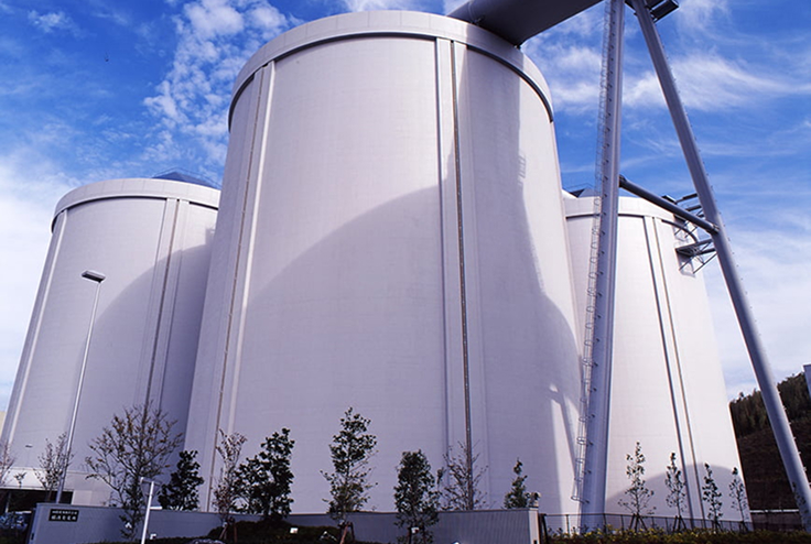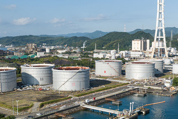 石油タンカーより受け入れられる石油は、パイプラインで石油タンクへ送られ、一時的に貯蔵されます。