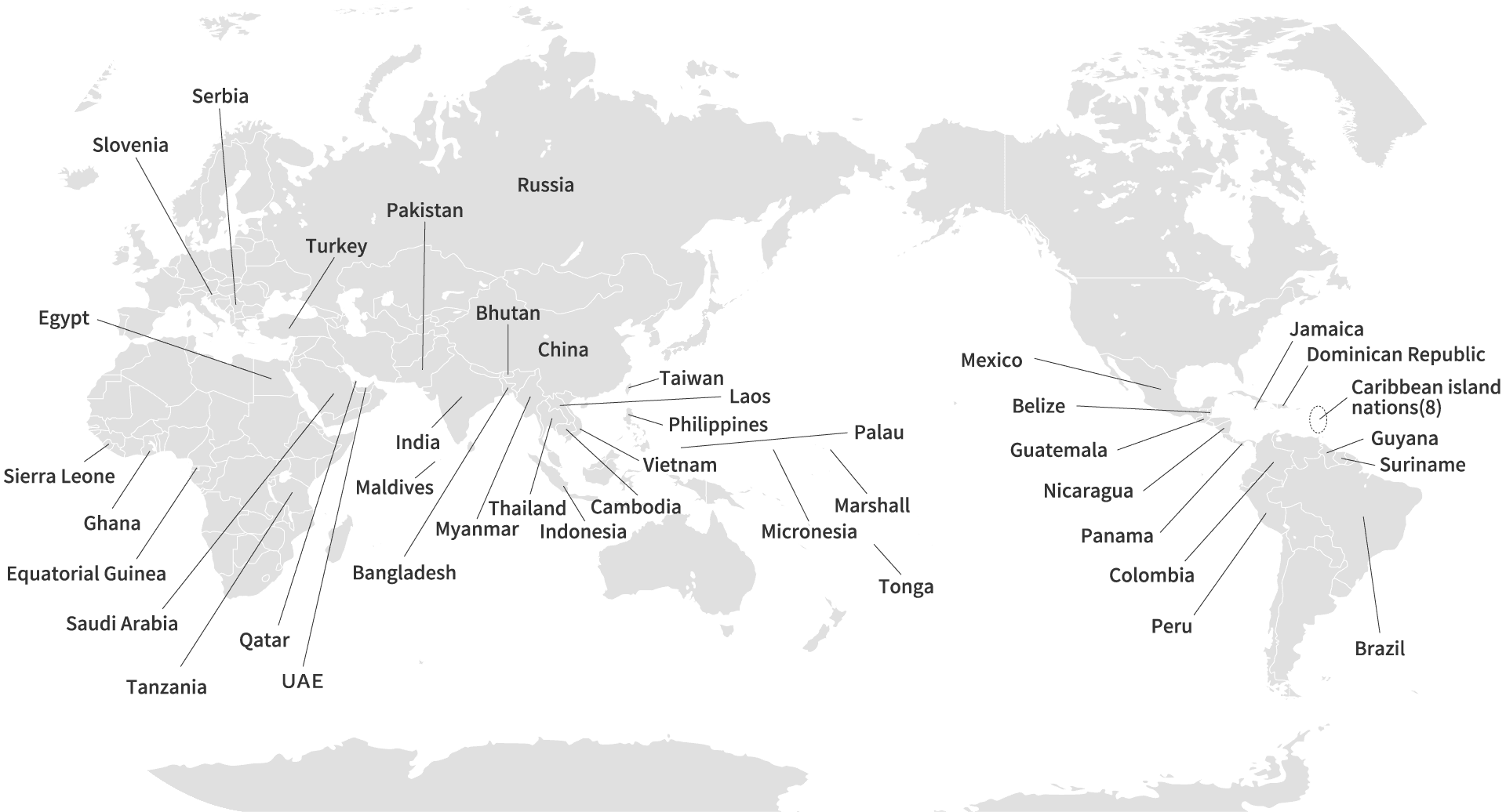 As of March 31, 2018, we have been contracted to undertake 94 consulting projects in 50 countries. Through these activities, we are contributing to infrastructure development and environmental preservation in developing countries.