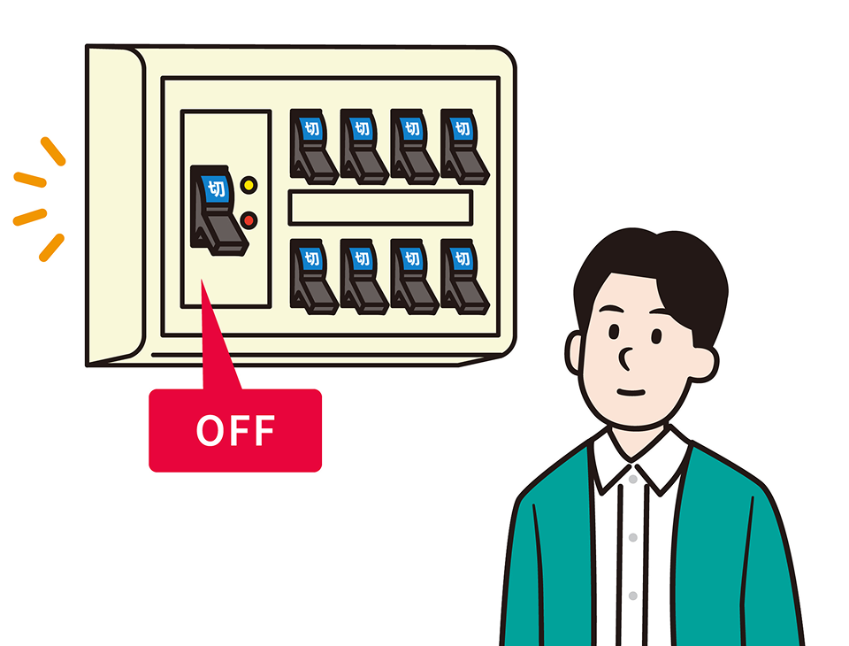 家の外に避難するときは、電気の消し忘れによる事故を防ぐため、ブレーカーのスイッチを切ってください。