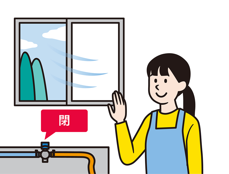 窓を開けて換気し、最寄のガス会社に連絡してください。