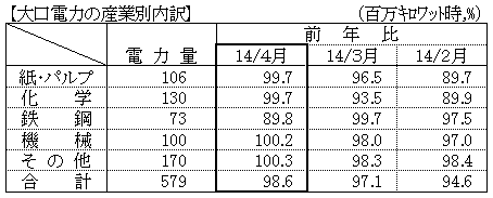 - 大口電力は、鉄鋼などにおける生産減から、対前年比 98.6%となった。(7ヶ月連続マイナス)