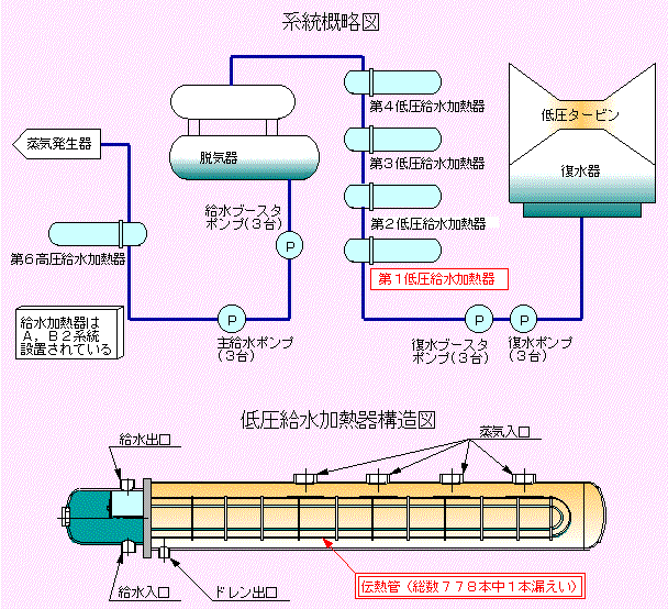 タービンの蒸気により、蒸気発生器への給水を加熱する機器。