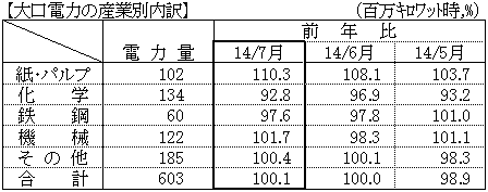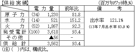 平成14年7月分電力需給状況
