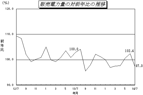 - 電灯,小口電力は、6月下旬から7月上旬にかけての気温が前年に比べ低めに推移したことから、対前年比は各々 93.1%,95.0%となった。