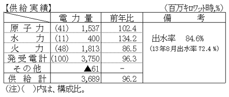 平成14年8月分電力需給状況