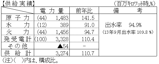 平成14年9月分電力需給状況