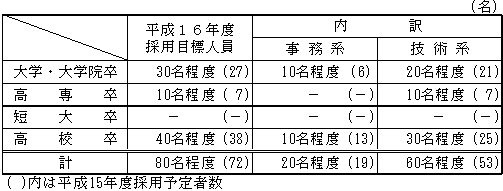 1.採用目標人員[平成16年3月卒業予定者対象]