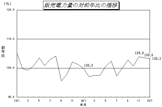 - 電灯・業務用は、1月の気温が前年に比べ低めに推移したことなどから、対前年比は各々、102.2%, 105.1%となった。