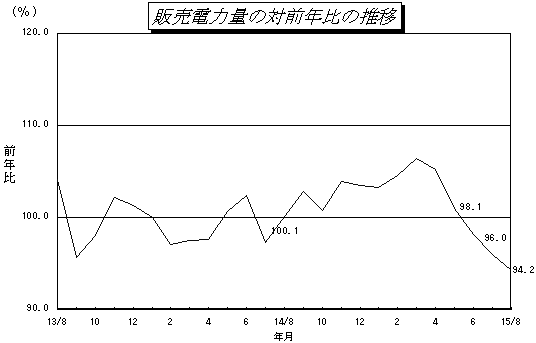 - 電灯、小口電力は、7月上旬から8月中旬の気温が前年に比べ低めに推移したことから、対前年比は各々88.4%、91.8%となった。