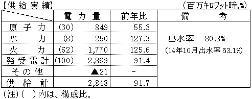 平成15年10月分電力需給状況