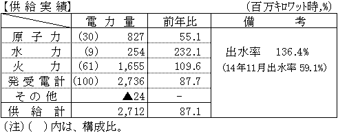 平成15年11月分電力需給状況