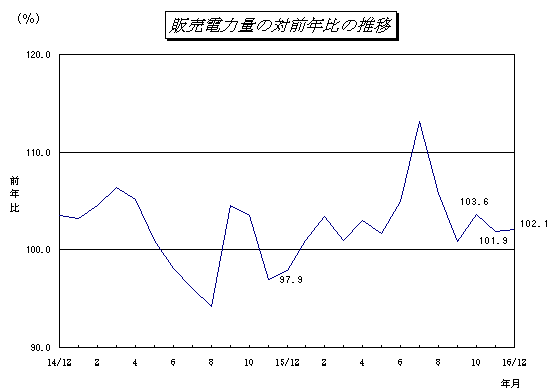 - 電灯、業務用電力の対前年比は、各々101.6%、101.4%となった。