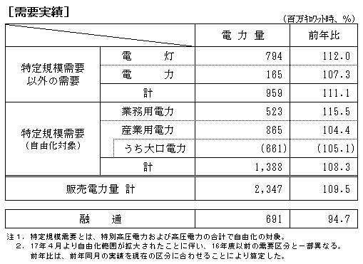 平成17年12月の販売電力量は、23億4千7百万キロワット時、 前年比109.5%となった。