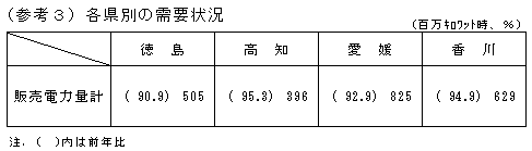 各県別の詳細については四国の電力需給状況をご覧下さい |