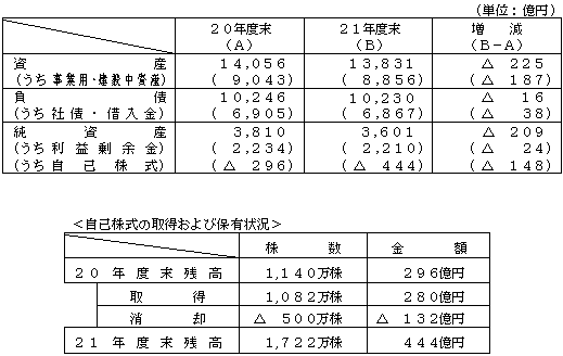 一方、純資産は、利益剰余金が減少したことに加え、自己株式の増加(純資産の減少)などから、前年度末に比べ209億円減少の3,601億円となりました。