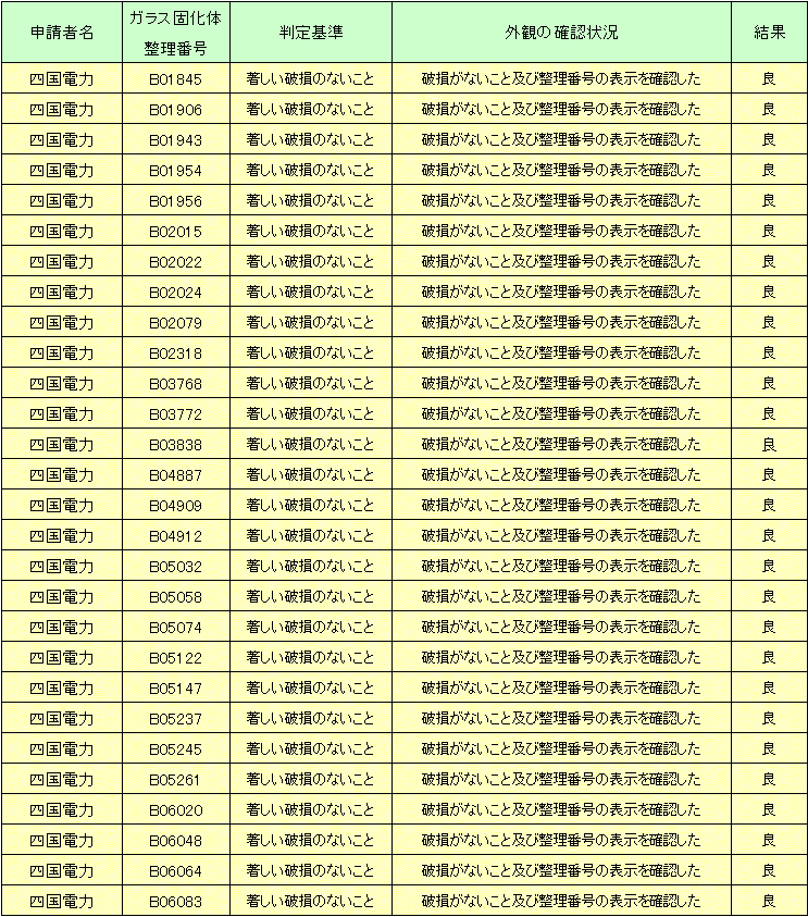 当該ガラス固化体(B01845,B01943,B01954,B01956)においては、 |