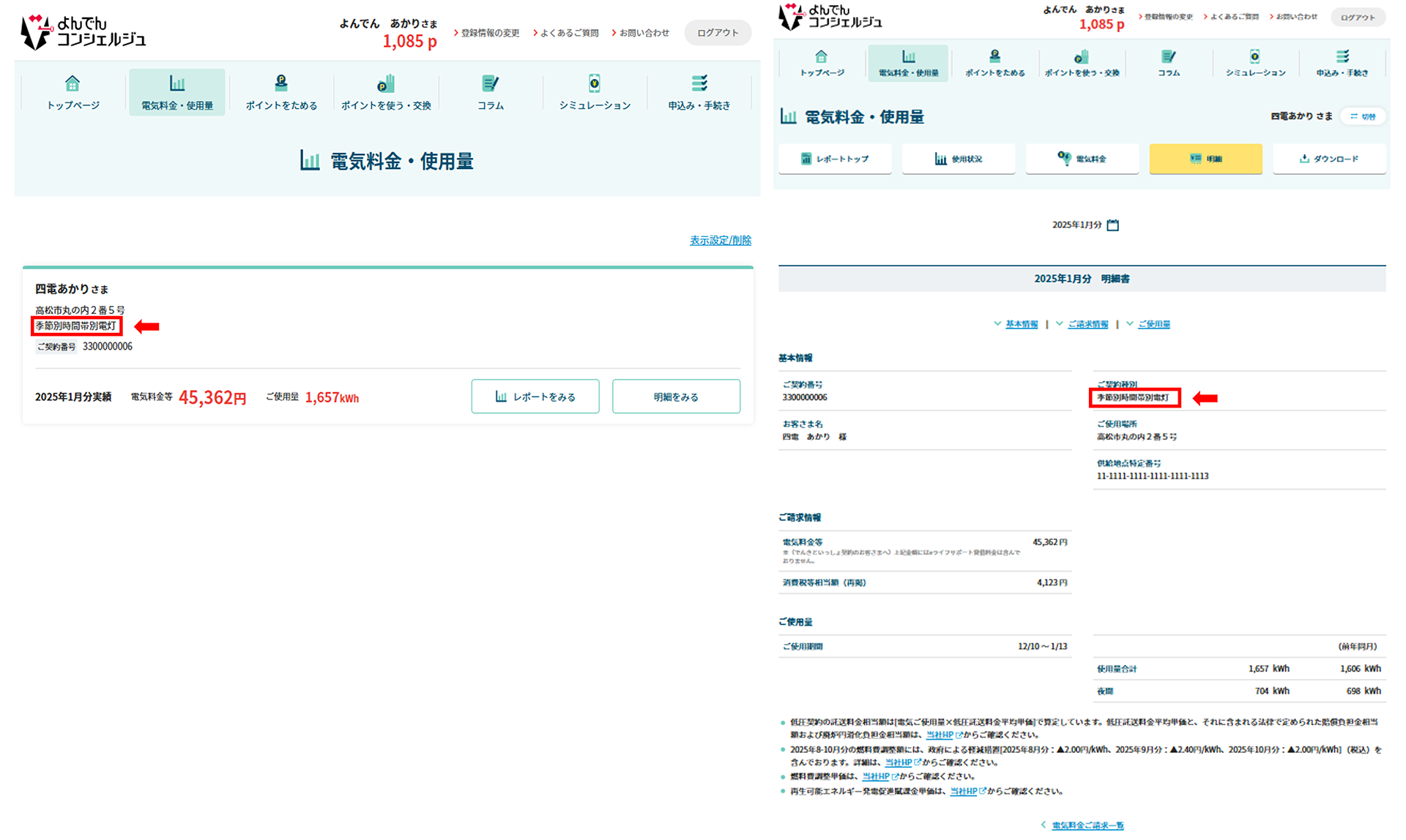 お客さまがご契約されている料金プランは「よんでんコンシェルジュ」や「請求書」でご確認いただけます。