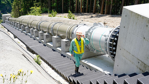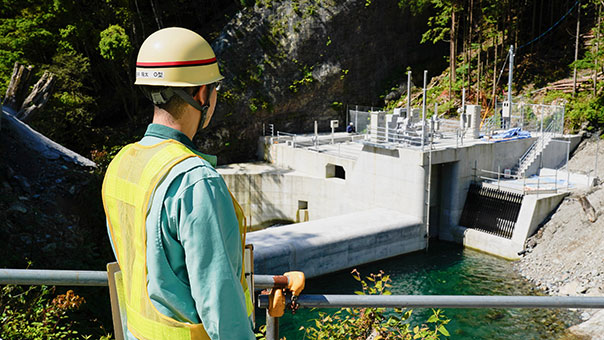 愛媛県久万高原町で建設中の「黒藤川発電所」は、よんでんとしては約30年ぶりの新規建設となる水力発電所。よんでんでは発電時にCO₂を出さない再生可能エネルギーの活用、将来的な主力電源化を目指しており、その一環として新規水力の建設に取り組んでいます。この会社を挙げたプロジェクトに携わっているのは、建設当初から土木工事を担当する田中さんと、電気工事を担当し本店で進捗管理など総括業務に携わる中西さん。ふたりにとってのカーボンニュートラルとは、そして四国の豊かな自然エネルギーと向き合うふたりの想いとは・・・