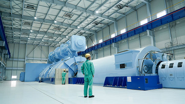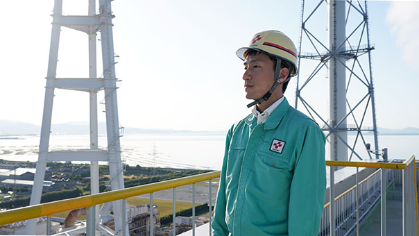 火力発電は再生可能エネルギーが増加するなかで調整役として欠かせない一方、発電時のCO₂排出を減らす取り組みが求められています。よんでんでは、西条発電所1号機のリプレースや、燃料にアンモニアや水素を導入する技術検討を行うなど、火力発電の低炭素化・脱炭素化に向けた取り組みを進めています。「火力部 CN推進グループ」で、その大きな課題に向き合う橋本さんと二関さん。橋本さんは、以前、西条発電所1号機のリプレースにも携わっていました。誰も通ったことのない挑戦の道を進む、ふたりの熱い想いとは・・・