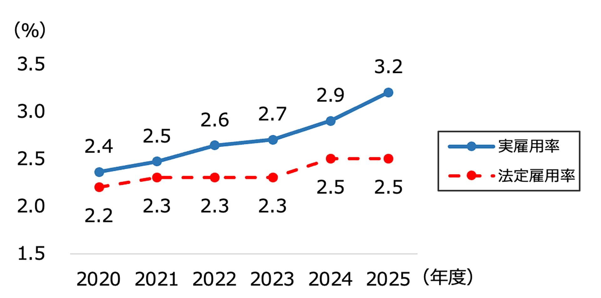 - 「障がい者雇用の促進等に関する法律」に基づく「特例子会社」として認定を受けた2020年以降の当社をはじめとするグループ適用4社合計の雇用率(各年度6月時点)