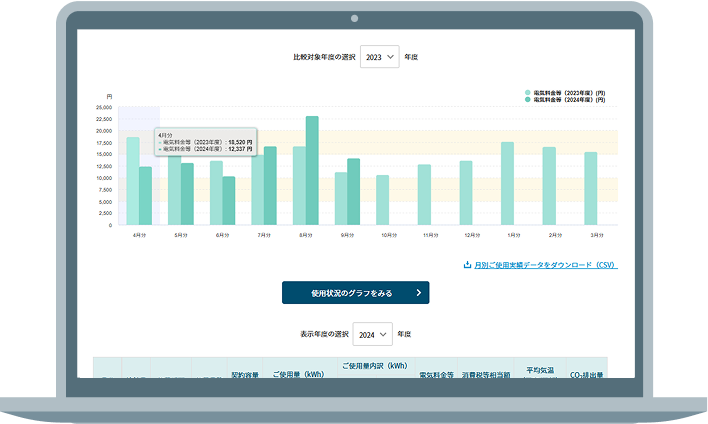 昨年と比べて節電できたかどうかをチェックしてみましょう。